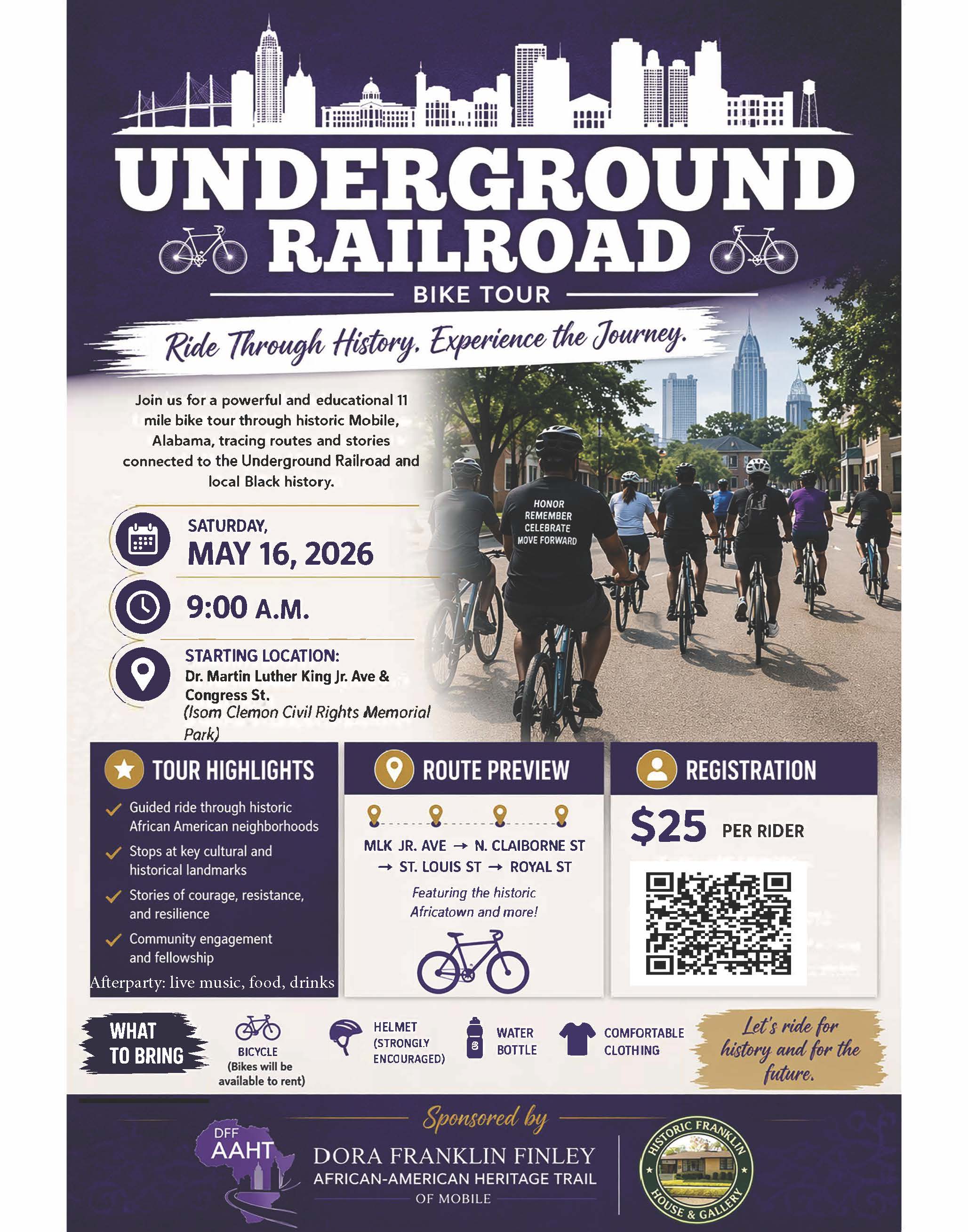 Join us for a powerful and educational 11 mile bike tour through historic Mobile, Alabama, tracing routes and stories connected to the Underground Railroad and local Black history.